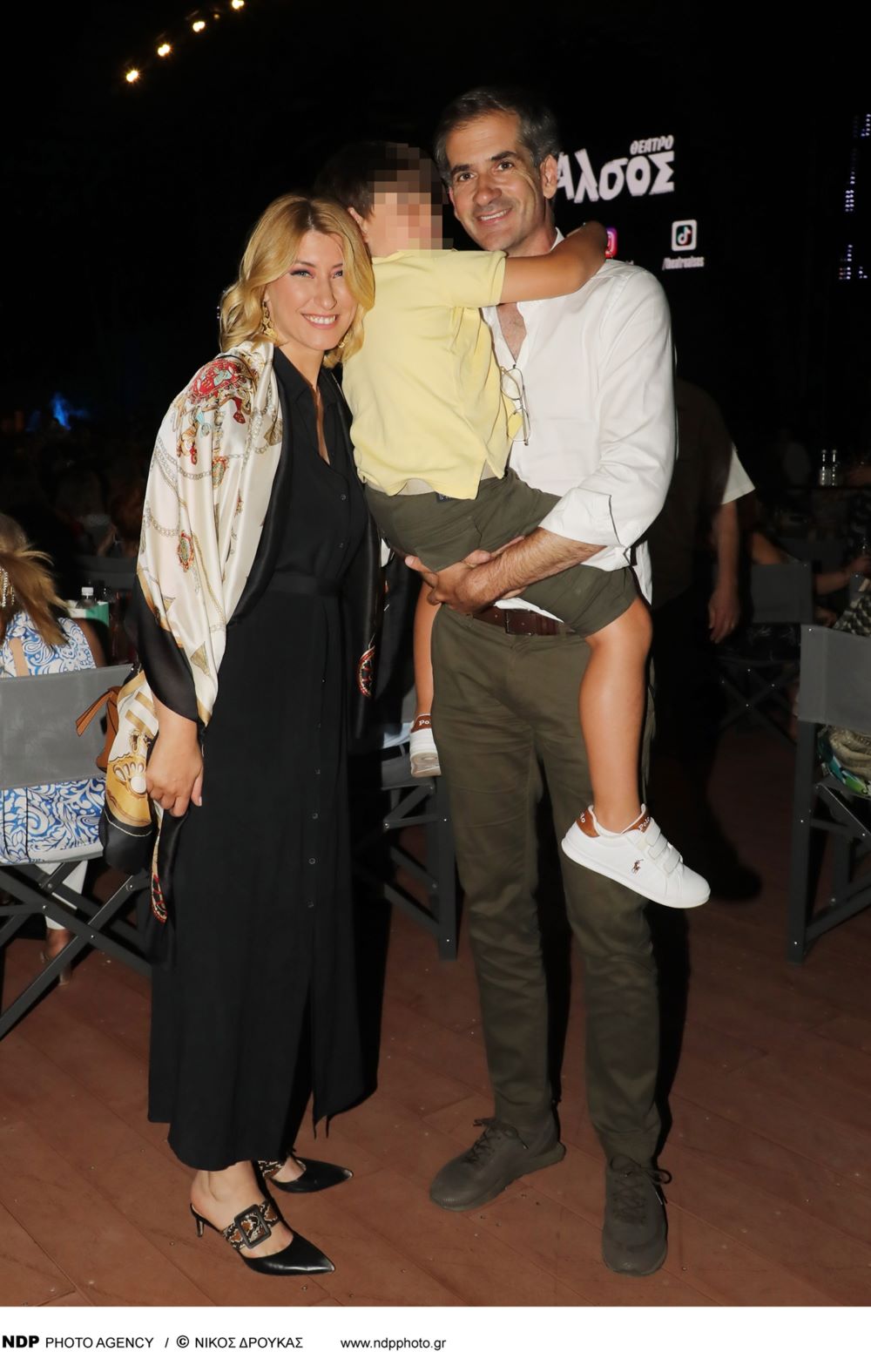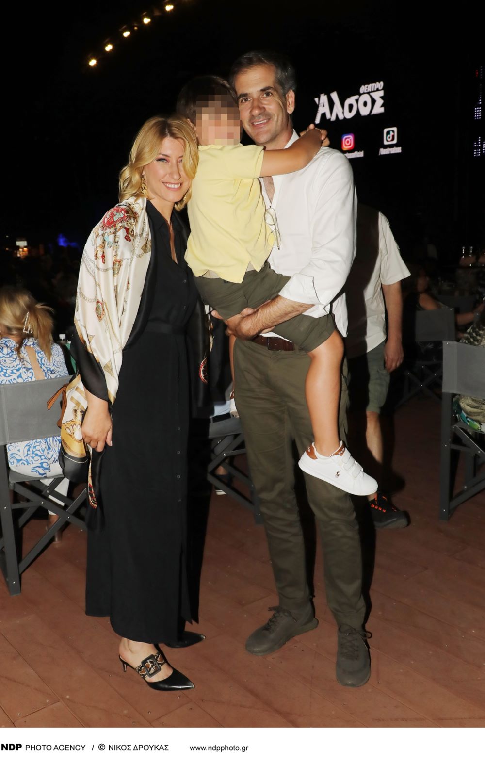 Η παρουσιάστρια του δελτίου ειδήσεων του ΣΚΑΪ μαζί με τον πρώην δήμαρχο Αθηναίων, αλλά και τον γιο τους, Δήμο βρέθηκαν στο θέατρο Άλσος προκειμένου να παρακολουθήσουν τη θεατρική παράσταση "Τότε, τώρα, πάντα".