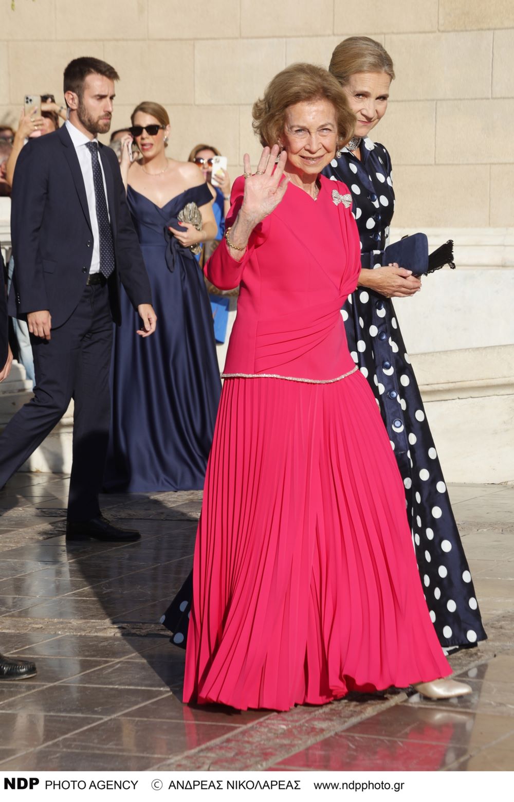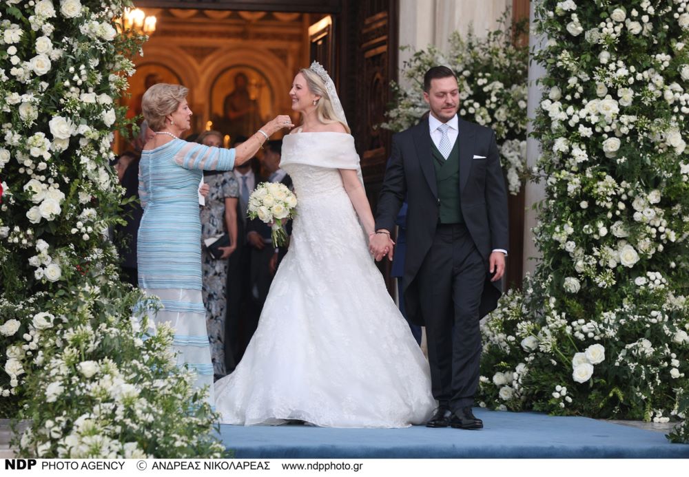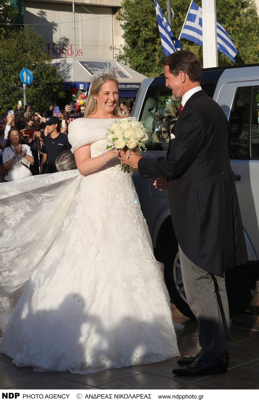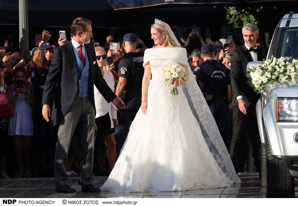 Η νύφη έκλεψε τις εντυπώσεις φορώντας νυφικό διά χειρός της Σήλιας Κριθαριώτη. Όπως είχε γίνει γνωστό, η νύφη επέλεξε τιάρα από τον οίκο Cartier. Η πριγκίπισσα Θεοδώρα συνοδεύτηκε στην εκκλησία από τον πρίγκιπα Παύλο.