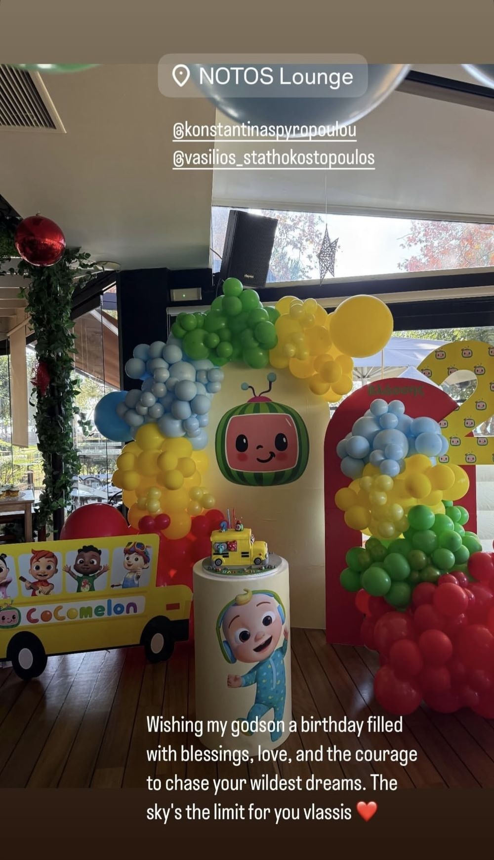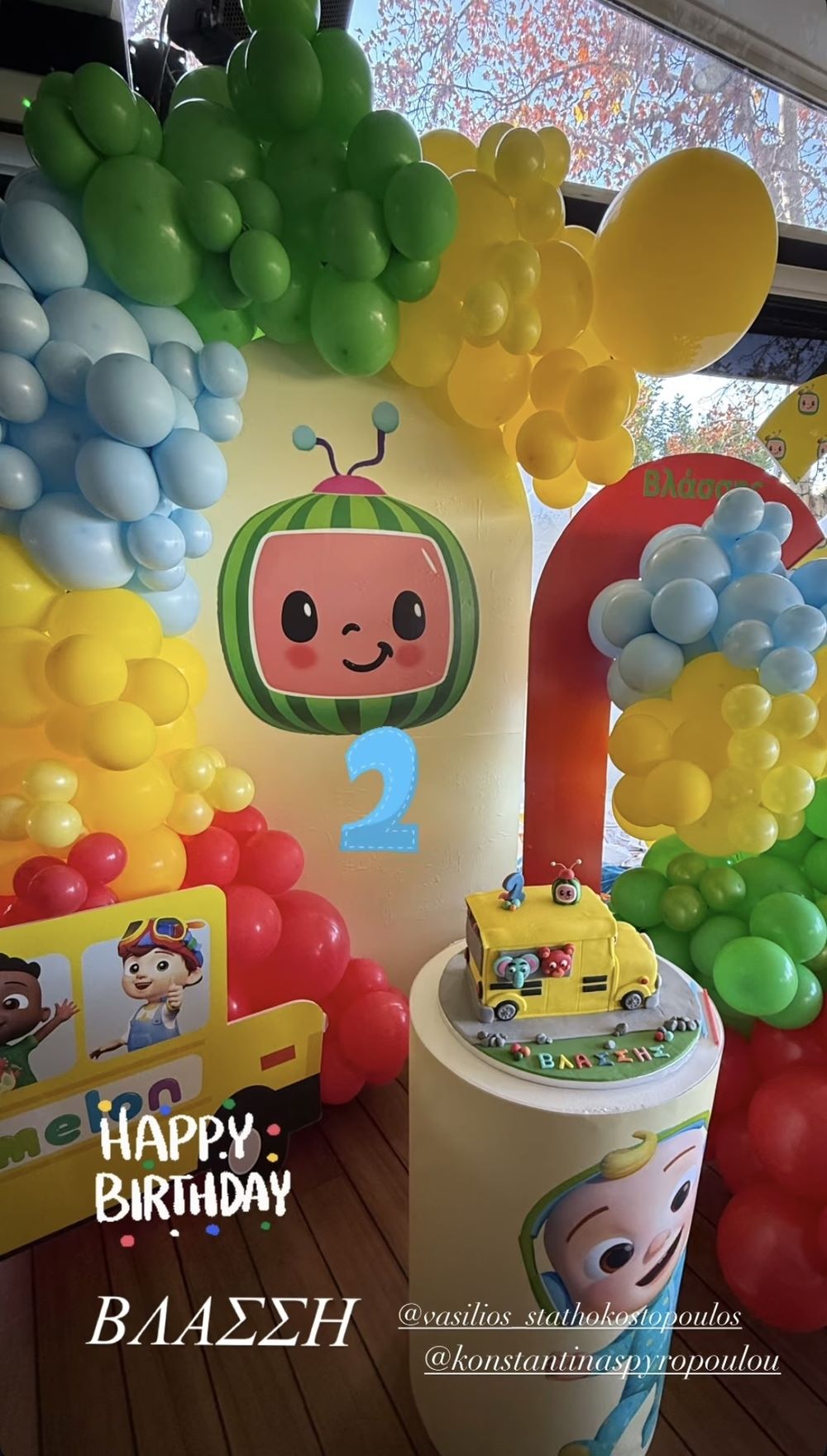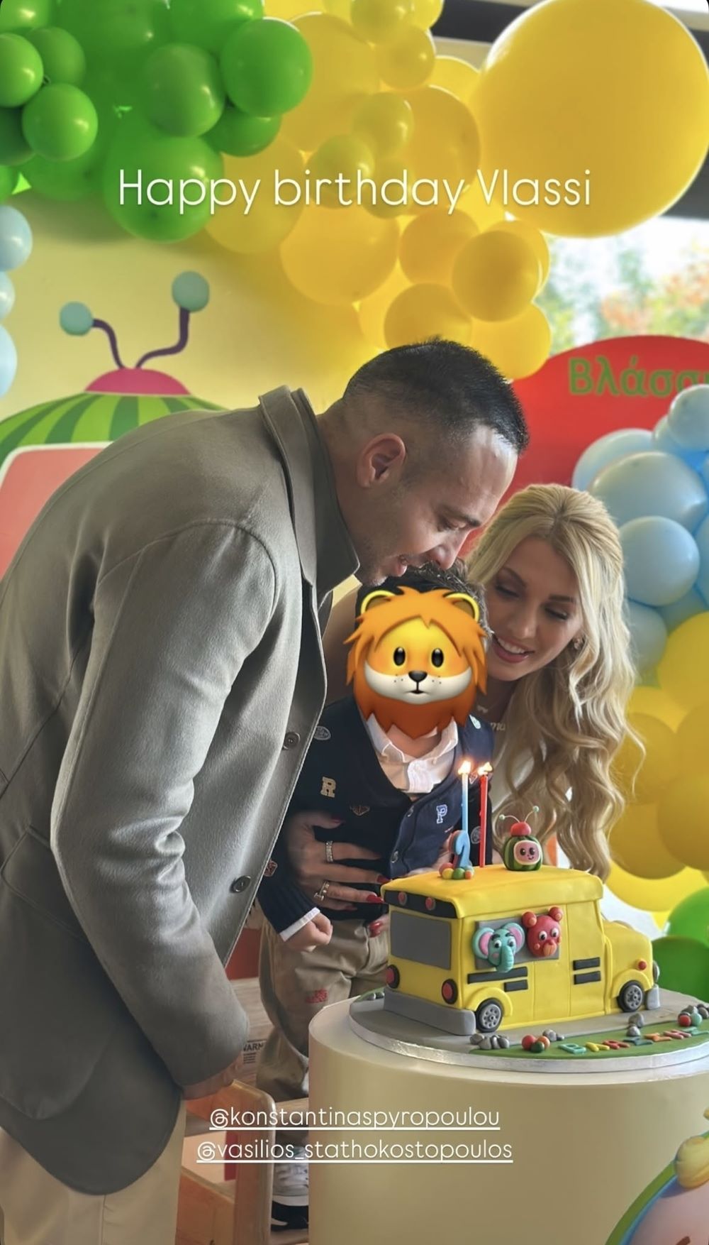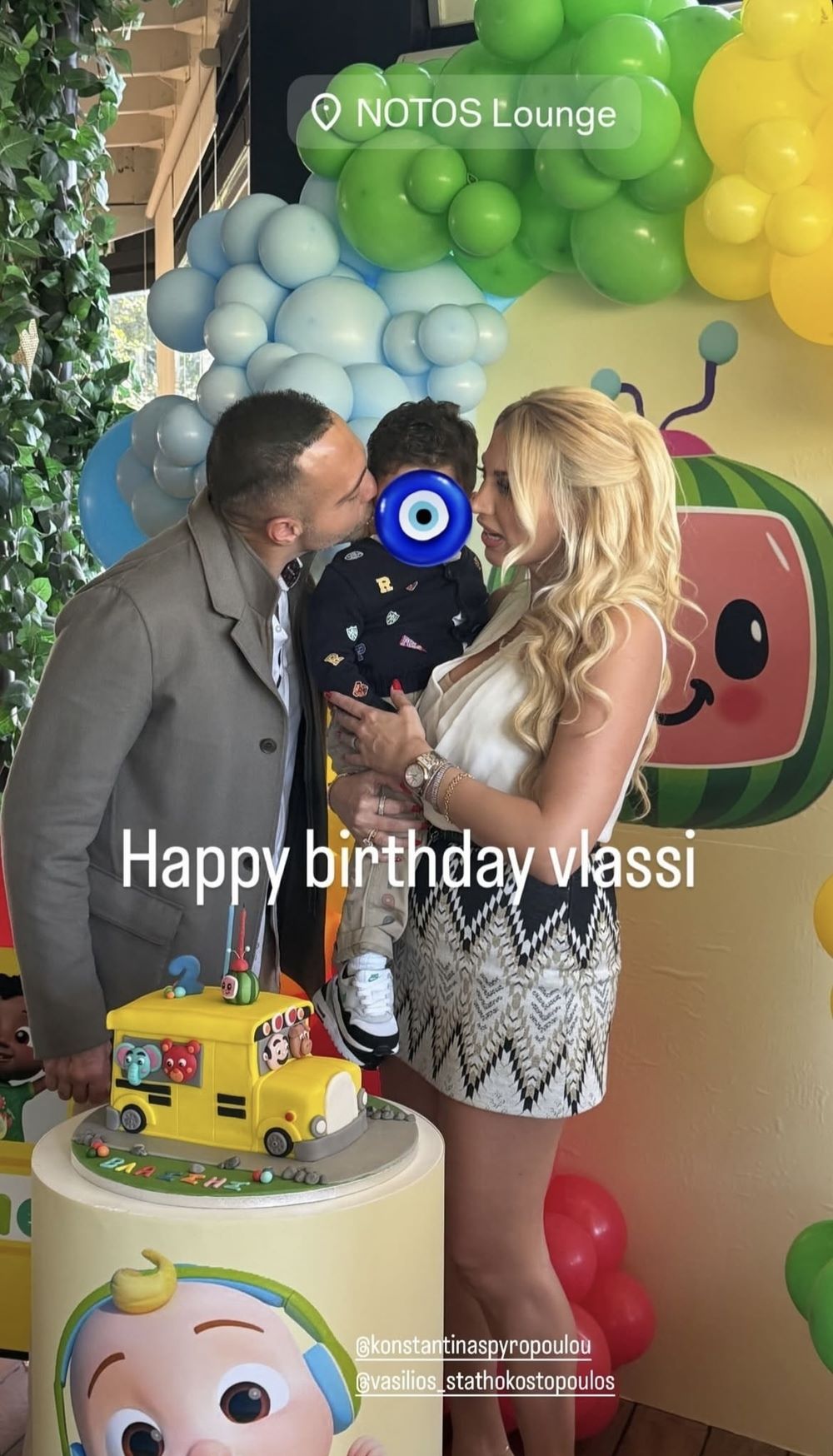 Το ερωτευμένο ζευγάρι γιόρτασε τα γενέθλια του πρωτότοκου γιου του με ένα παιδικό πάρτι, που κύριο θέμα είχε τα λεωφορεία. Ο επιχειρηματίας και η παρουσιάστρια μοιράστηκαν τη χαρά τους με αγαπημένα τους πρόσωπα, τα οποία δημοσίευσαν αρκετές φωτογραφίες από το πάρτι γενεθλίων, τις οποίες στη συνέχεια αναδημοσίευσε η Κωνσταντίνα Σπυροπούλου στον προσωπικό της λογαριασμό στο Instagram.