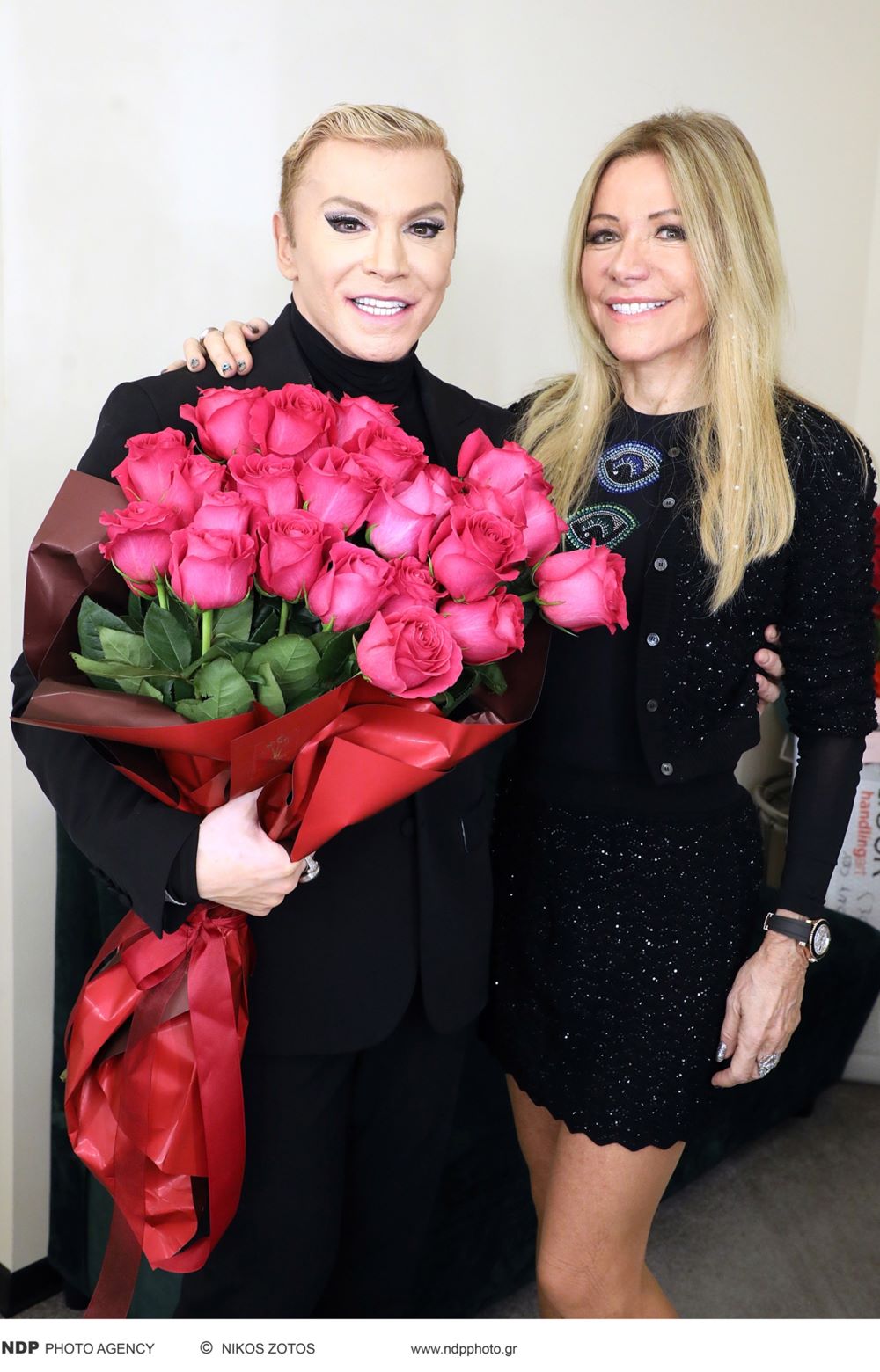 H επιχειρηματίας βρέθηκε στο Embassy Theater για να παρακολουθήσει τη μουσική παράσταση "Sweet dreams... από κοντά" με τον Τάκη Ζαχαράτο και απαθανατίστηκε από τον φωτογραφικό φακό του Yupiii με τον performer.