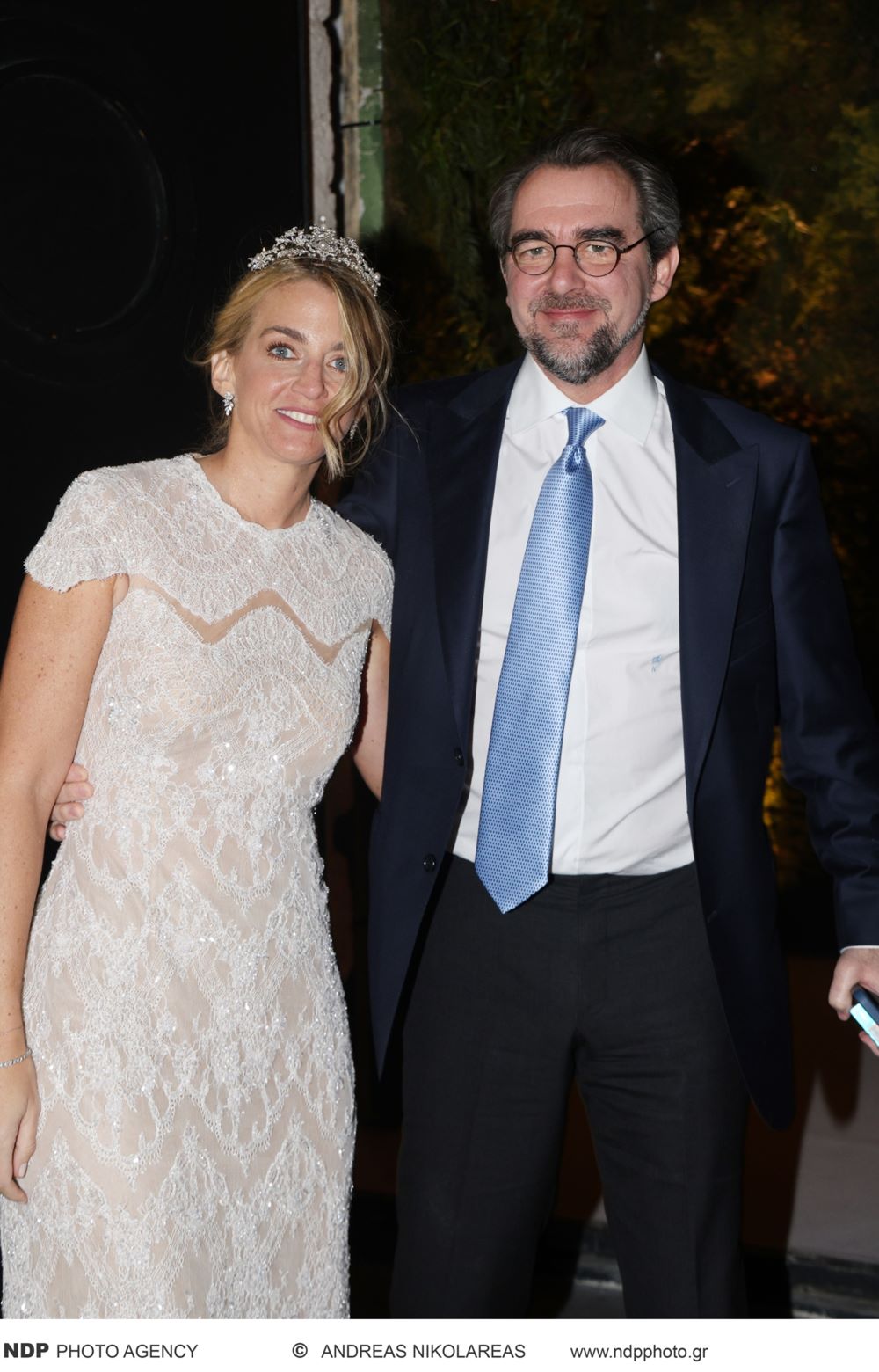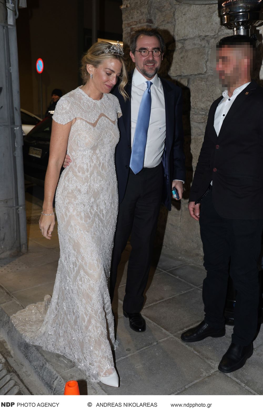 Στη συνέχεια ακολούθησε η γαμήλια δεξίωση στο Castor Place, κοντά στο λιμάνι του Πειραιά, με του καλεσμένους να μην ξεπερνούν τα 75 άτομα. Πρώτοι έφτασαν οι νεόνυμφοι, ενώ στη συνέχεια ακολούθησαν και οι επίσημοι προσκεκλημένοι τους.