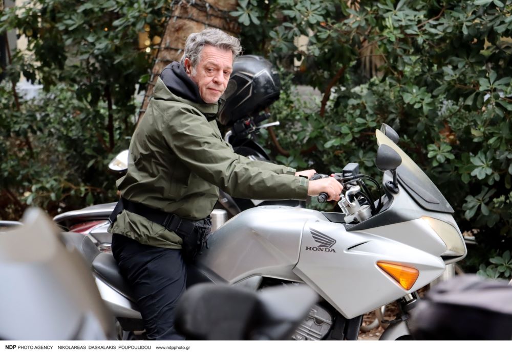 Ο Γιάννης Τσορτέκης με τη μηχανή του στην Αθήνα.