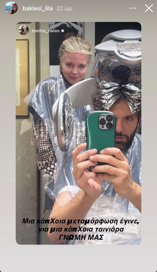 Αυτή τη φορά όμως, με αφορμή το νέο της επαγγελματικό βήμα, η Λίλα Μπακλέση αφέθηκε στα έμπειρα χέρια του Νικόλα Βιλιώτη, ο οποίος την μετέτρεψε στην πιο ξανθιά εκδοχή του εαυτού της. Όπως αποκάλυψε η ίδια μέσα από ανάρτησή της στο Instagram, η γνωστή ηθοποιό είχε ως "συνεργό" τον Δημήτρη Μοθωναίο, ο οποίος απέκτησε επίσης ξανθά μαλλιά.