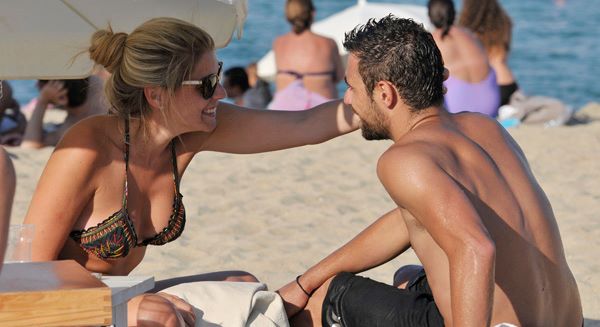 Ο Γιώργος Τζαβέλλας και η Στέλλα Γιαμπουρά, που είναι ζευγάρι τους τελευταίους τέσσερις μήνες, σε τρυφερές στιγμές σε παραλία του νησιού.