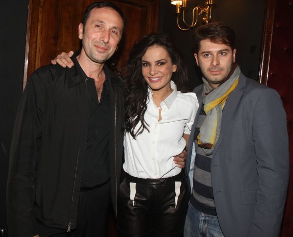 Ο Ρένος Χαραλαμπίδης με τον Αλέξανδρο Μπουρδούμη και την πρωταγωνίστρια της παράστασης "Η Συνέντευξη", Δήμητρα Ματσούκα.