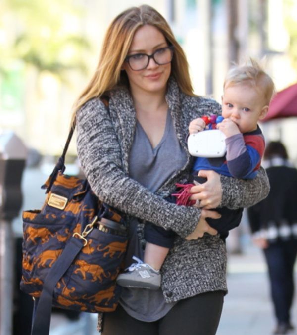 Η Χίλαρι Νταφ σε μια από τις συνηθισμένες βόλτες της αγκαλιά με τον γιο της, Λούκας.