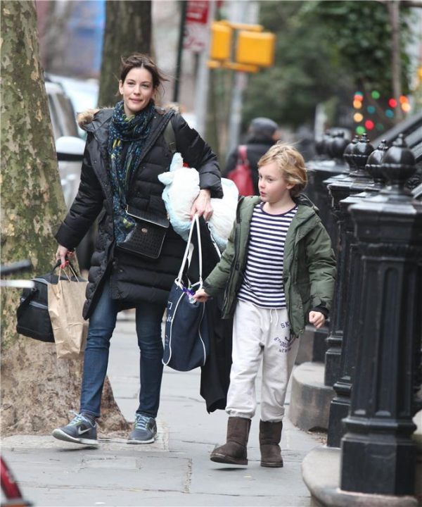 H Λιβ Τάιλερ και ο 8χρονος γιος της, Μάιλο, έξω από το σπίτι τους στην Νέα Υόρκη με αποσκευές, λίγο πριν φορτώδουν το αυτοκίνητό τους για να περάσουν εκτός πόλης τις μέρες των Χριστουγέννων.