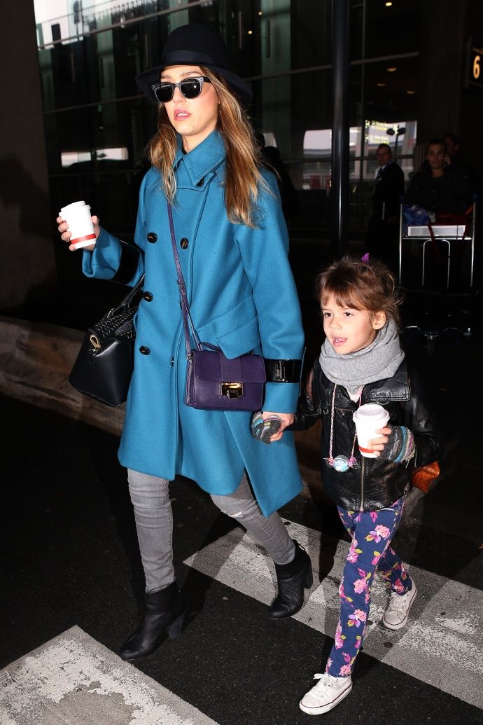 Τζέσικα Άλμπα με την κόρη της στο αεροδρόμιο