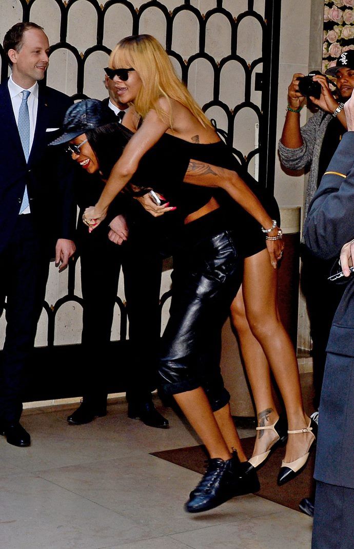 Στην πλάτη της καλής της φίλης Μελίσα Φόρντε βγήκε από το ξενοδοχείο της στο Παρίσι η Ριάνα. Η διάσημη τραγουδίστρια βρίσκεται στη Γαλλία, στα πλαίσια της περιοδείας της. Ωστόσο, η συναυλία της στο Βέλγιο την περασμένη Τετάρτη άφησε τους θαυμαστές της κάτι λιγότερο από ευχαριστημένους: Αφού άργησε περίπου δύο ώρες να εμφανιστεί στη σκηνή, έκανε τελικά μια εμφάνιση που απογοήτευσε: "'#Rihanna @Sportpaleis: drunk or stoned? #Disappointing #Weird" (Ριάνα στο Sportpaleis: μεθυσμένη ή μαστουρωμένη; #απογοητευτικό #αλλόκοτο) ήταν ένα μόνο από τα tweets ανθρώπων που παρακολούθησαν τη συναυλία.