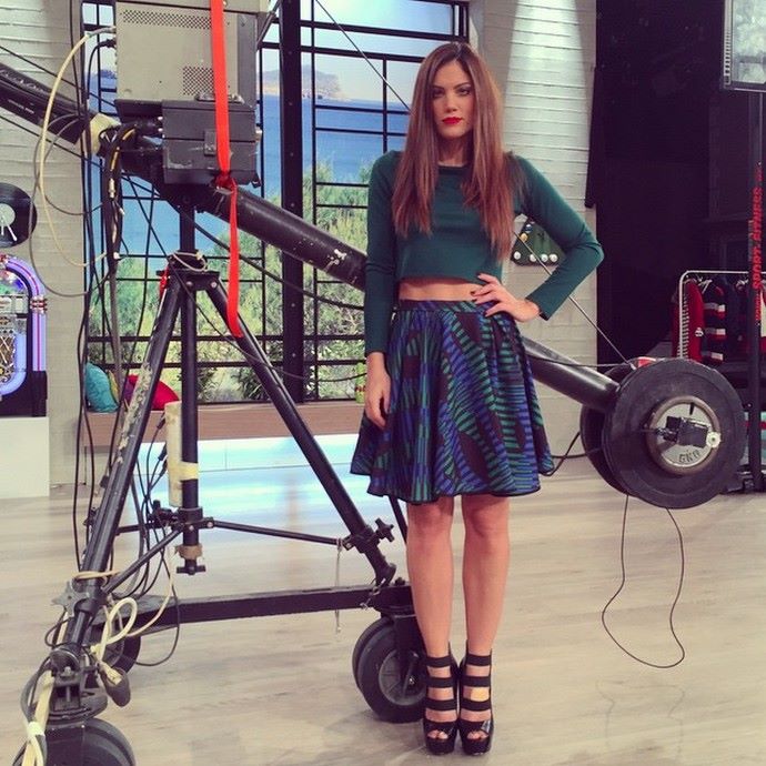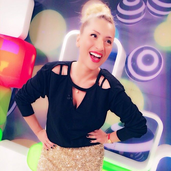 Η Μαίρη Συνατσάκη ποζάρει στο πλατό του «Πρωινού»