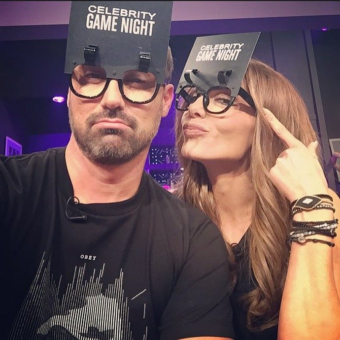 Ο Γιώργος Καπουτζίδης με τη Δέσποινα Βανδή στα γυρίσματα της πρεμιέρας του Celebrity Game Night