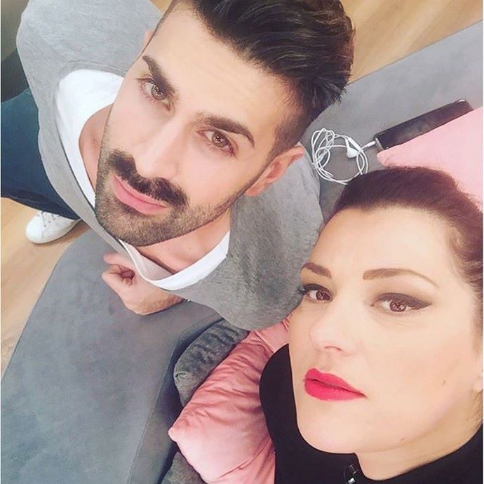 Η Κατερίνα Ζαρίφη με τον συνεργάτη της, Στάθη, στο πλατό της εκπομπής της Ελένης Μενεγάκη