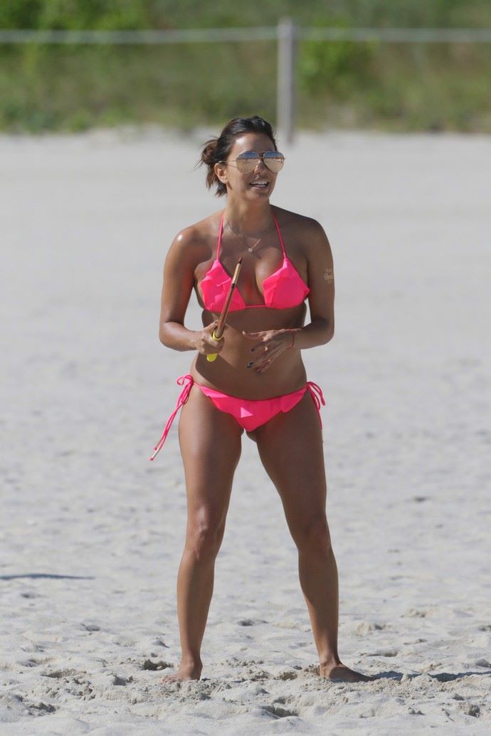 Τις διακοπές της και τον καυτό ήλιο απολαμβάνει η Eva Longoria παίζοντας ρακέτες στην παραλία του Μαϊάμι.