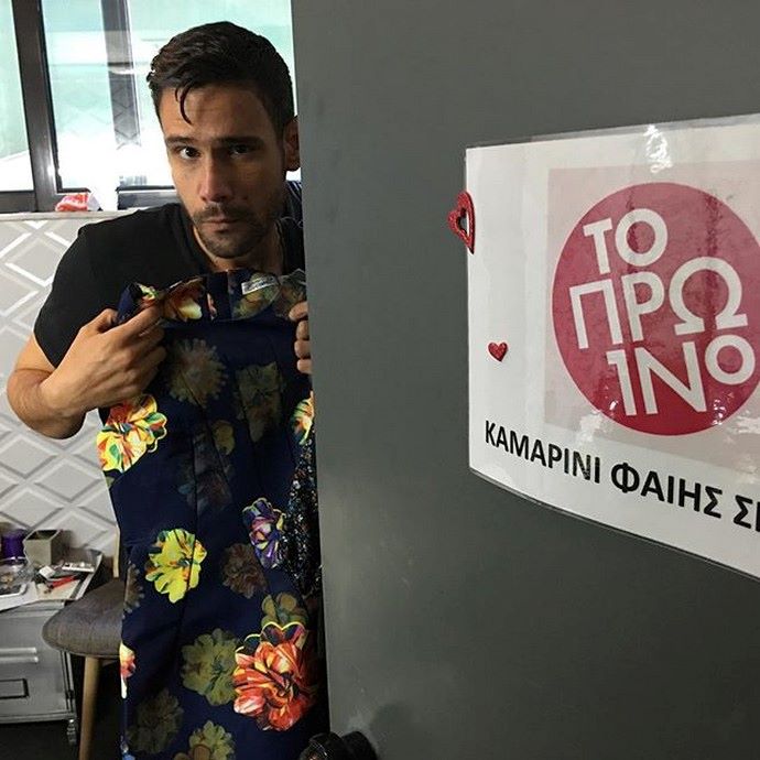 Ο Δημήτρης Ουγγαρέζος έχοντας εισβάλει στο καμαρίνι της Φαίης Σκορδά