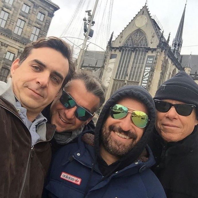 Ο Γιώργος Λιάγκας και ο Θέμης Γεωργαντάς με τον Ηλία Κοκοτό και τον Τζώνη Καλημέρη στο Άμστερνταμ