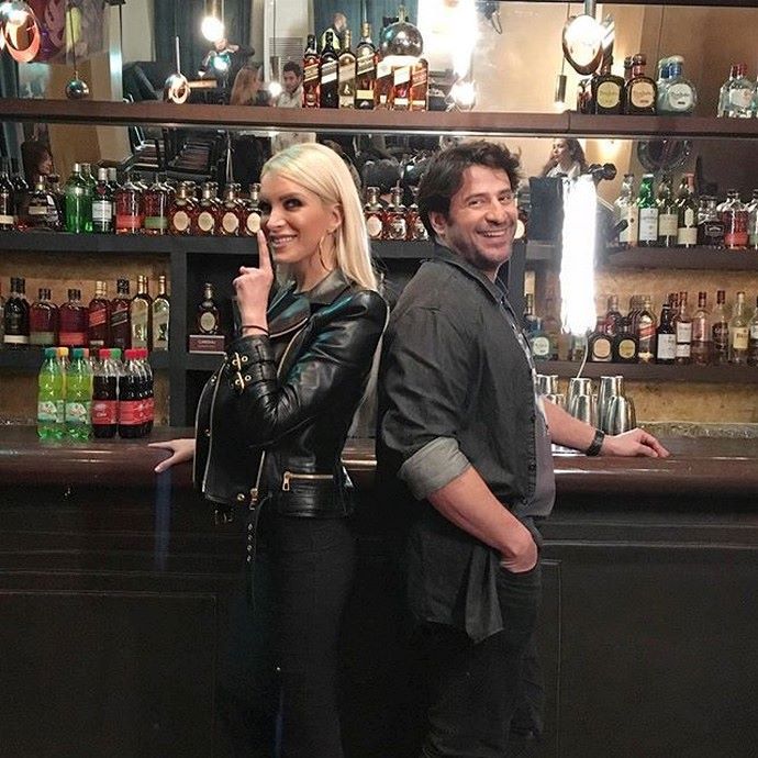 Η Κατερίνα Καινούργιου με τον τηλεοπτικό «Barman» Αλέξη Γεωργούλη στο γύρισμα της συνέντευξής του για το «Λόγω TiViς»
