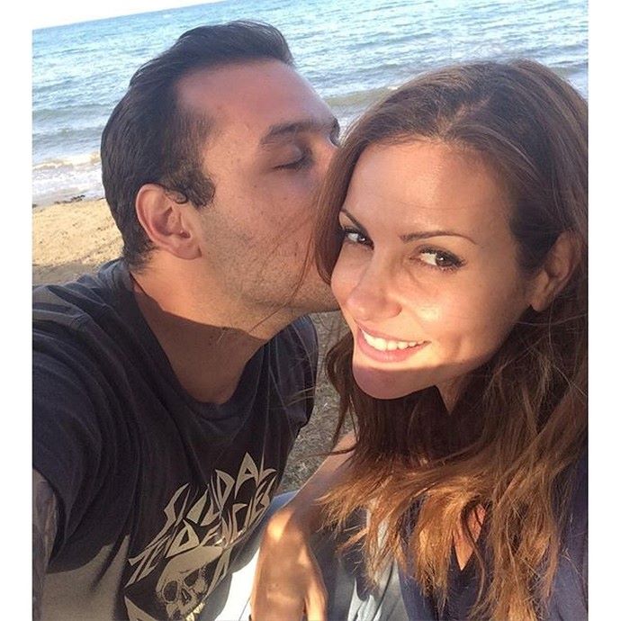Ο Βασίλης Λιάτσος δίνει ένα φιλί στην εγκυμονούσα σύντροφό του, Ελένη Καρποντίνη