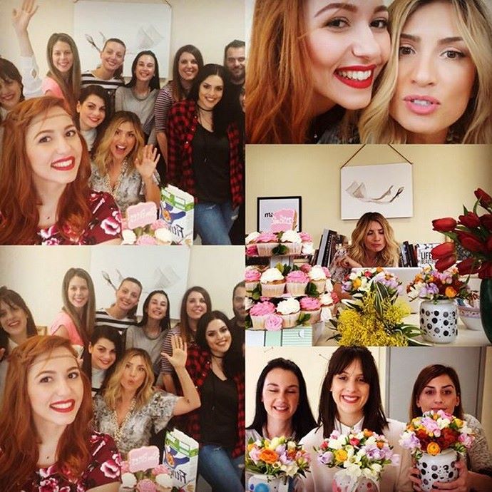 Η Μαρία Ηλιάκη με την ομάδα του MissBloom.gr δουλεύοντας το νέο τους project