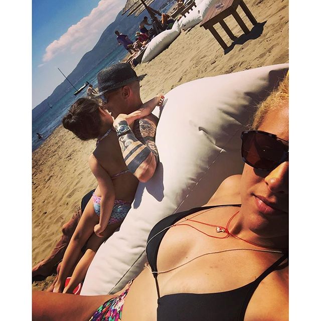 H Έλενα Ασημακοπούλου με τον Μπρούνο Τσιρίλο και την κόρη τους στην παραλία