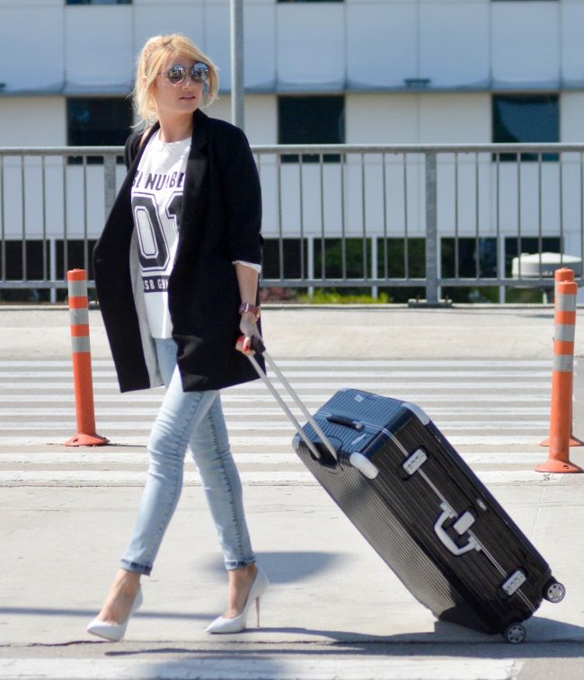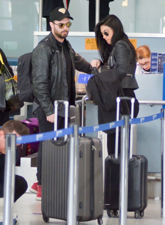Ο Μάρκος Σεφερλής και η Έλενα Τσαβαλιά με τον γιο τους στο αεροδρόμιο