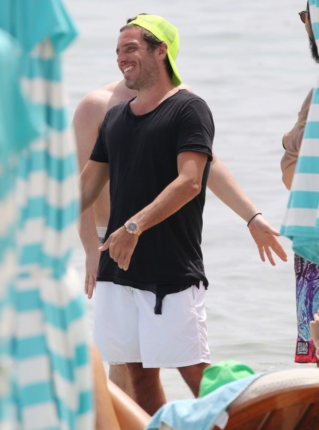 Η Δούκισσα Νομικού σε παραλία της Μυκόνου. Μαζί της και ο Δημήτρης Θεοδωρίδης