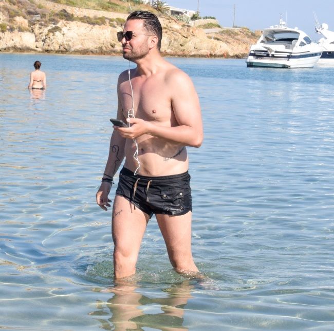 Ο Ηλίας Βρεττός σε παραλία της Μυκόνου (1)