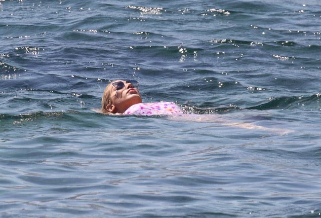 Η παρουσιάστρια του Alpha επέλεξε ένα ολόσωμο μαγιό σε ροζ απόχρωση και απόλαυσε τον μπάνιο της κάτω από τον καυτό ήλιο.