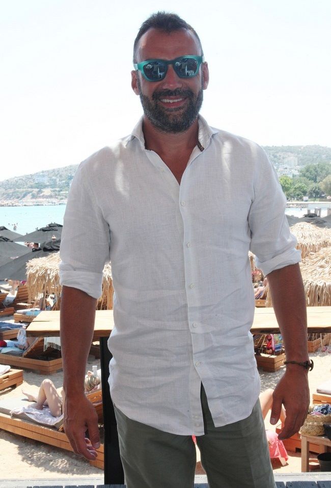 Ο Λάμπρος Χούτος στην παραλία της Βάρκιζας