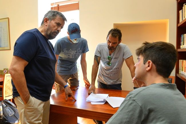 Κάνε ότι κοιμάσαι Σπύρος Παπαδόπουλος, ο βοηθός σκηνοθέτης Πάνος Κατσιμπέρης, ο σκηνοθέτης Αλέκος Κυράνης και ο Βασίλης Ντάρμας