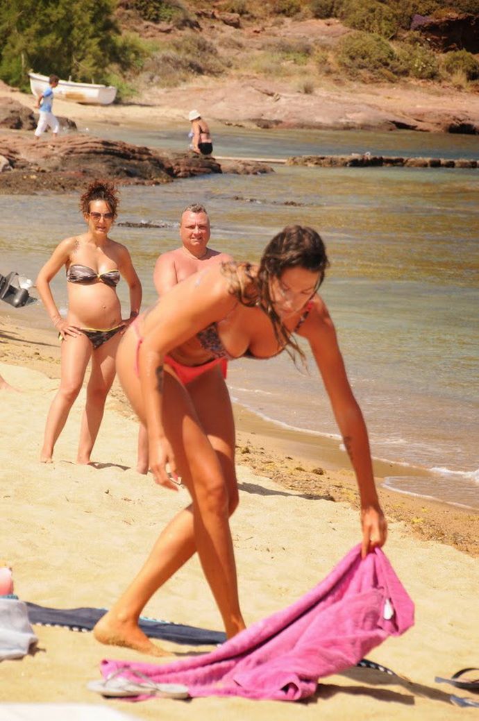 Στο νησί βρίσκεται και η Εύα Λάσκαρη (συνοδευόμενη-παντρεμένη και αυτή γαμώτο μου), αλλά με την ντουλάπα της φίσκα στα μικροσκοπικά μαγιουδάκια.