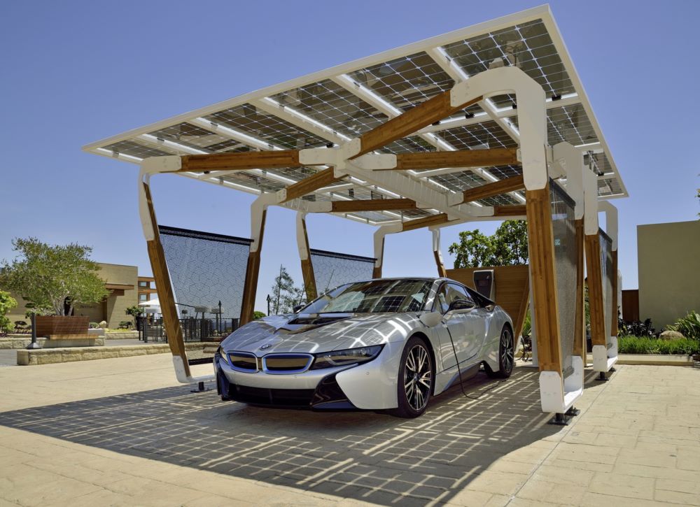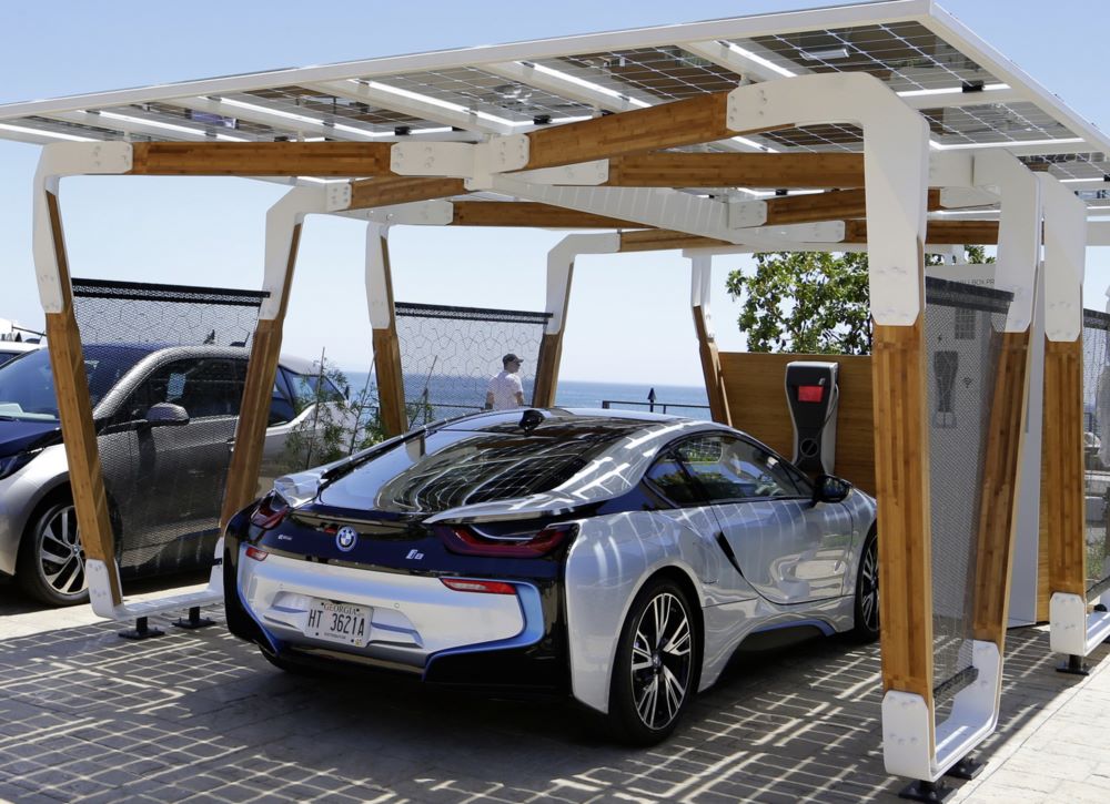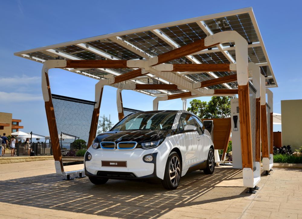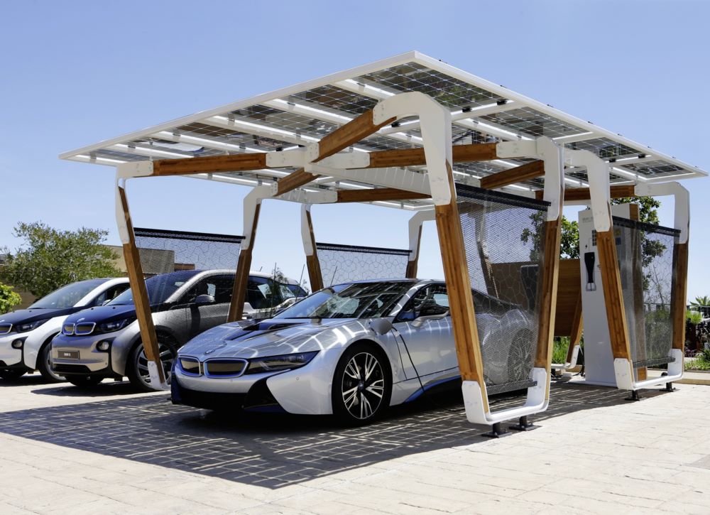 Ένα πρωτότυπο ηλιακό γκαράζ, το solar carport concept παρουσίασε η BMW Group DesignworksUSA στο Los Angeles. Το στυλάτο, οικολογικό γκαράζ έχει πλαϊνά στοιχεία από ανθρακονήματα, αλλά το βασικό υλικό είναι μπαμπού με τη μορφή δοκών. Σύμφωνα με τη BMW, λόγω ταχείας ανάπτυξης, το μπαμπού θεωρείται μία εξαιρετικά βιώσιμη πρώτη ύλη. Η οροφή καλύπτεται από κρυστάλλινα φωτοβολταϊκά πάνελ και φροντίζει για την παραγωγή ηλεκτρισμού που στη συνέχεια χρησιμοποιείται για τη φόρτιση ηλεκτρικών οχημάτων, όπως το i3. Τα πάνελ είναι ημιδιαφανή και πολύ ανθεκτικά, ενώ παρέχουν υψηλή ενεργειακή πυκνότητα. Είναι αξιοσημείωτο πως για τα ηλιακά πάνελ της Ευρώπης, ο κατασκευαστής προσφέρει εγγύηση 30 ετών.