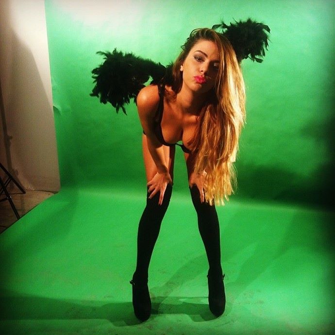 Και φυσικά ξέρει πολύ καλά ότι τα φτερά αγγέλου τής ταιριάζουν. Και ορθά επιλέγει να τα φορέσει σε μαύρο χρώμα, συνδυάζοντάς τα με καυτά εσώρουχα.