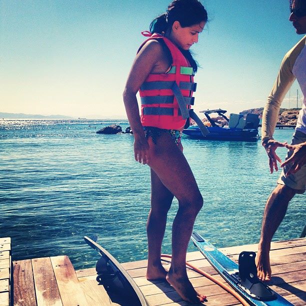 Απόλυτη καλοκαιρινή της φωτογραφία -και πιο πρόσφατη- είναι αυτή που ακολουθεί. Έχει γονατίσει εκεί που σκάει το κυματάκι και μας δείχνει το sunkissed κορμί της.