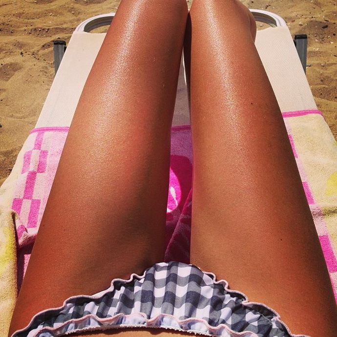 Έχει δυο πόδια αψεγάδιαστα, που φαίνονται όταν τα φωτογραφίζει ενώ κάνει ηλιοθεραπεία, φορώντας παιχνιδιάρικα μαγιό...